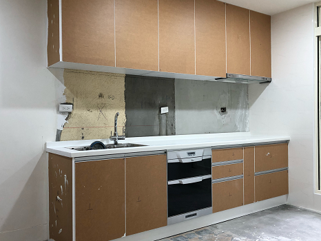 ▼系統廚具-結晶鋼烤門板+嵌入式G形把手